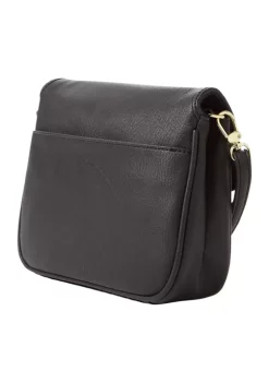 - Exterior: silver circle hardware on flap