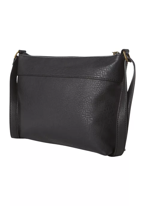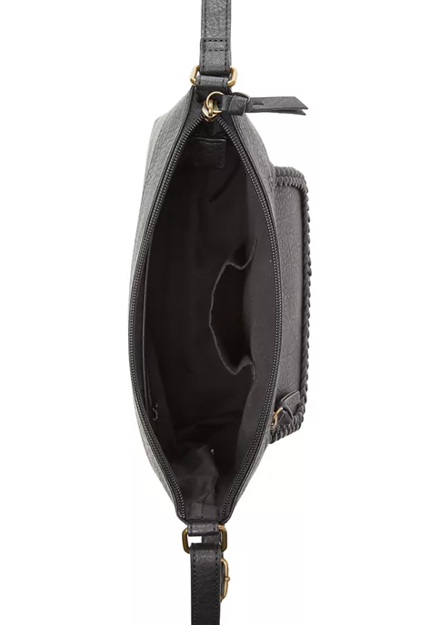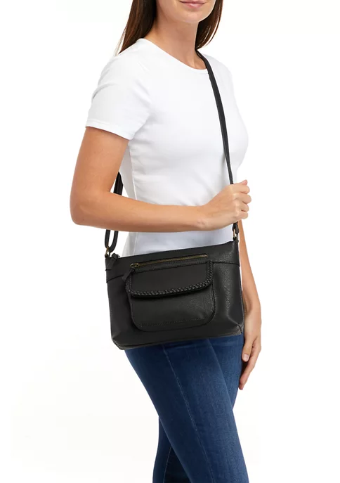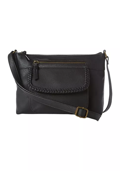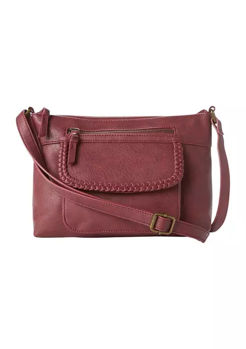 Mindfully made with faux leather, this crossbody bag from Kim Rogers® is enhanced with a braided flap for textural appeal.