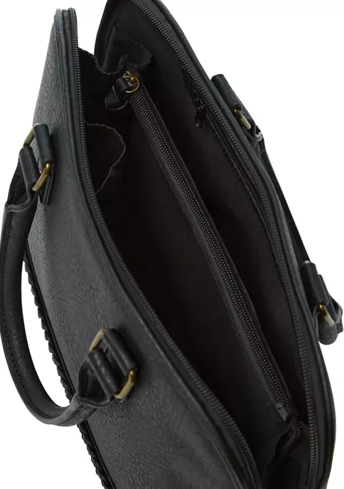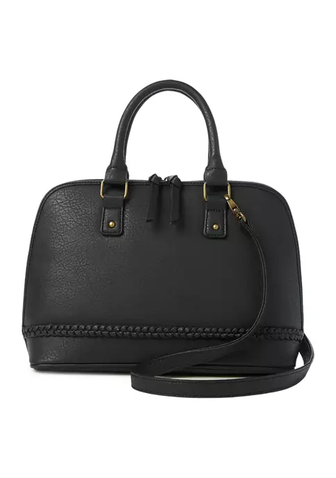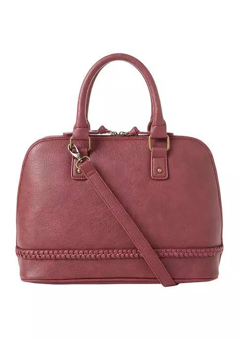This Kim Rogers® leather satchel has a dome shape and braided details.