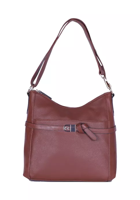 Designed in a tortoise shell silhouette, this shoulder bag from Kim Rogers® is a unique addition to your collection.