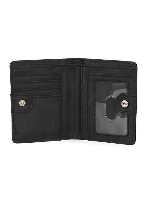- 4 credit card pockets, 2 slip pockets on left side. 1 ID window and 2 slip pockets on right side. Bill compartment runs entire length of wallet., 1, Yes