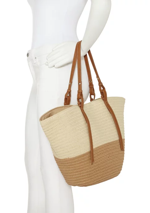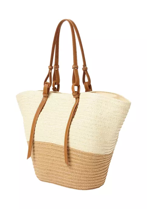 Offered in a modern two-tone silhouette with a color-blocked look, this straw tote from Collection XIIX is ideal for beach days, lunch with the girls, and more.