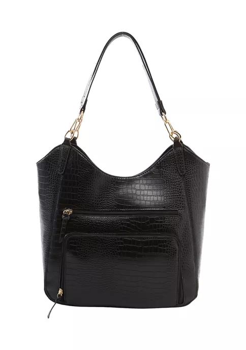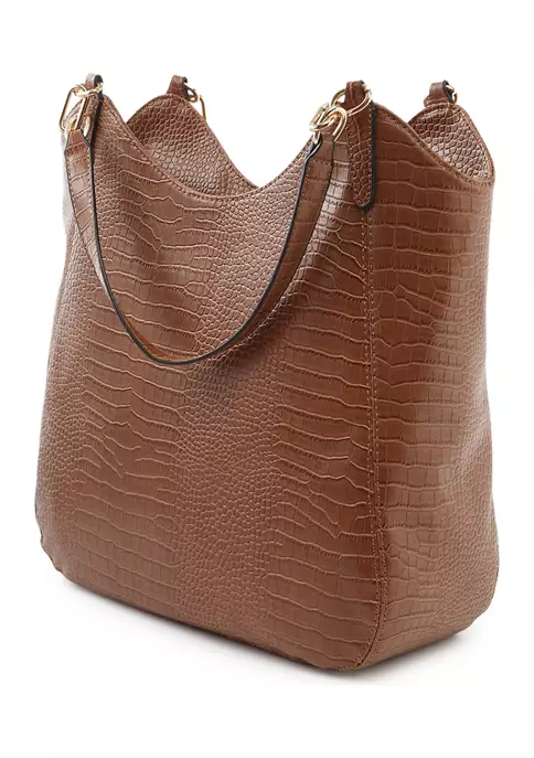 Croco-embossed faux leather and a slouchy silhouette defines the laid-back style of this hobo bag from Kim Rogers®.