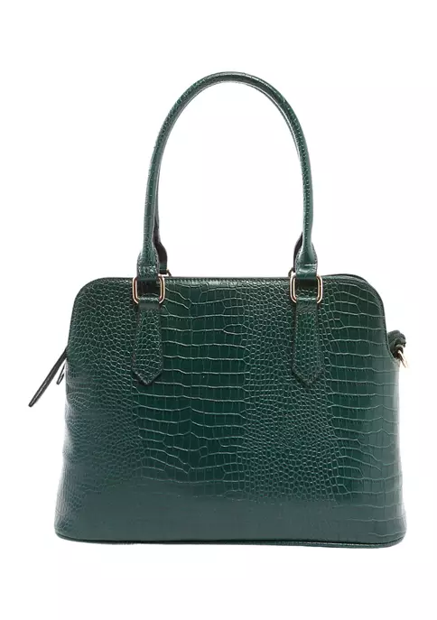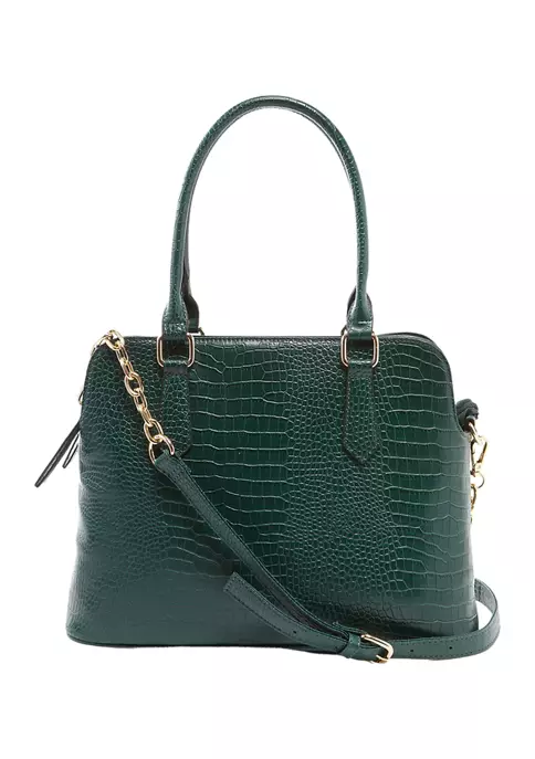 Croco-embossed faux leather and gold-tone metal hardware perfectly punctuate the sophisticated structure of this Kim Rogers® satchel .