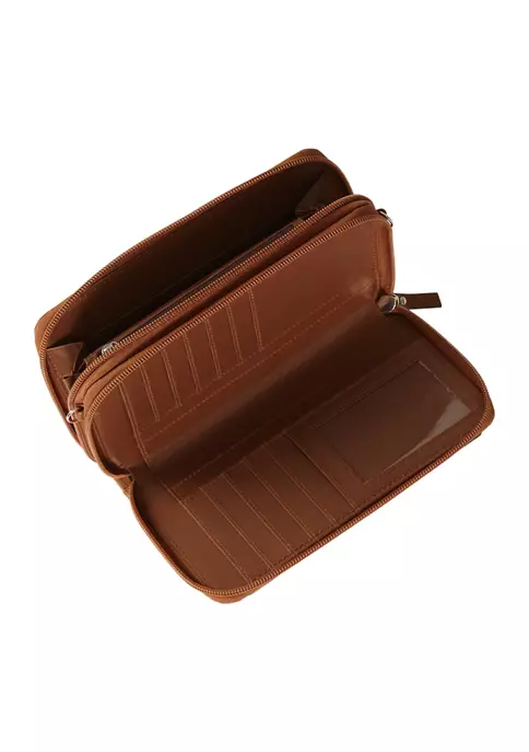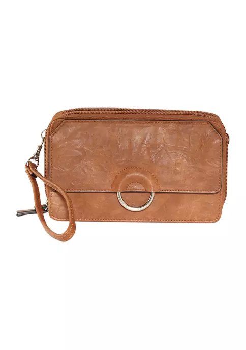 A distressed faux leather exterior lends worn-in allure to this wallet from Kim Rogers® that’s updated with a chic circle accent on the front.