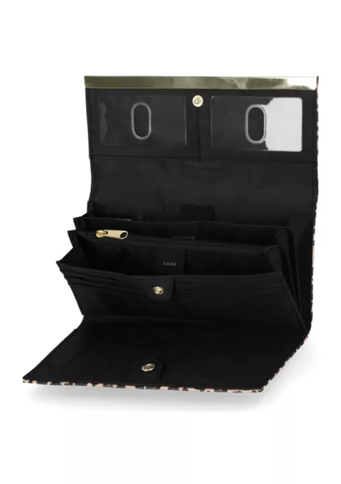 - Interior: 2 ID windows, gusseted pockets with a sewn label to organizing coupons, receipts, and cash; Front tab section has 6 credit card pockets, 6 slip pockets & additional 6 left entry credit card pockets