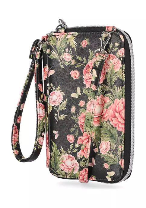- Removable crossbody strap with 27″ drop, removable wristlet strap with 6″ drop