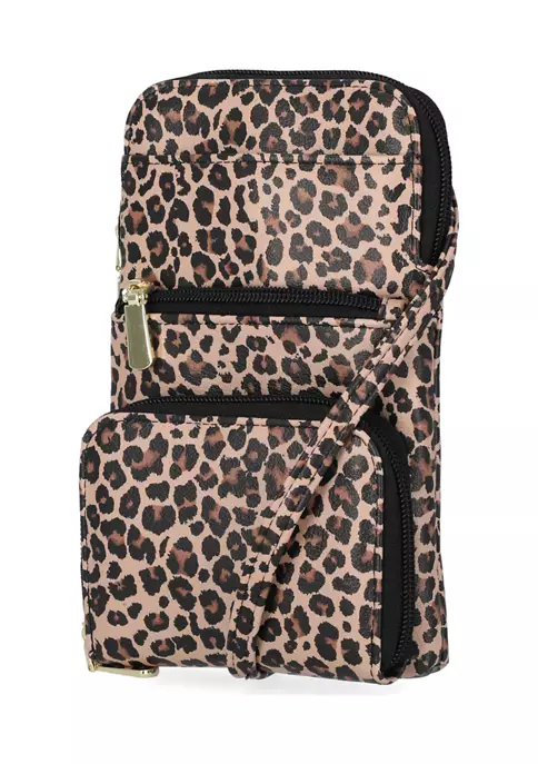 - Interior: large deep zip-around pocket can hold a large phone, a front gusseted zip pocket with 4 credit card pockets, front access slip pocket + additional zip pocket