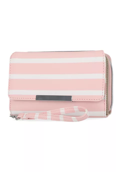 The convenient wristlet strap on this Kim Rogers organizer wallet means you can take it with you wherever you go! Featuring lining treated with Silvadur antimicrobial technology to inhibit the growth of microorganisms in the fabric. The interior fabric is made from 100% recycled plastic bottles.