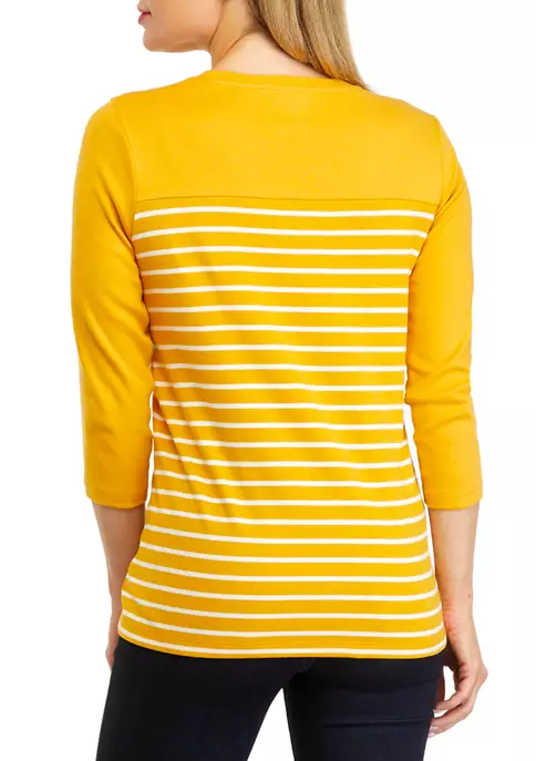 Top 10 🌟 Kim Rogers® Plus Size 3/4 Sleeve Henley Dot Paisle Top 😀