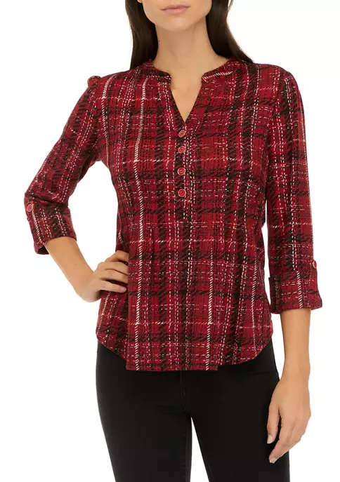 Top 10 🌟 Kim Rogers® Plus Size 3/4 Sleeve Henley Dot Paisle Top 😀
