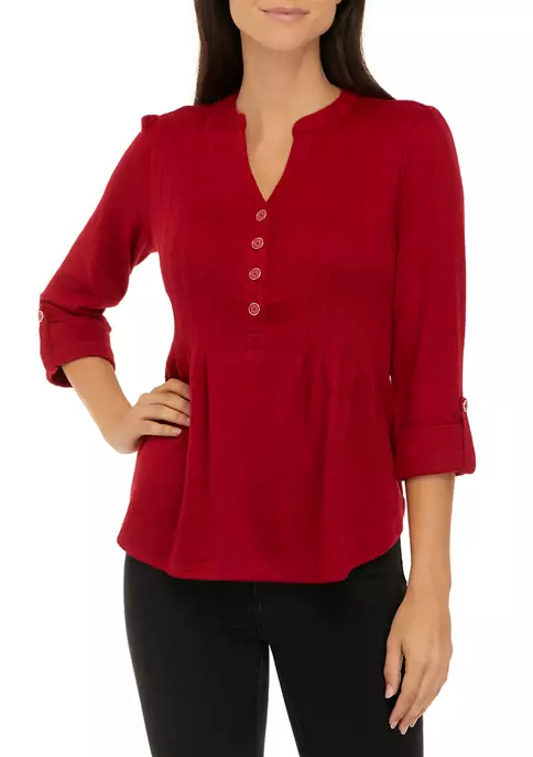 Top 10 🌟 Kim Rogers® Plus Size 3/4 Sleeve Henley Dot Paisle Top 😀