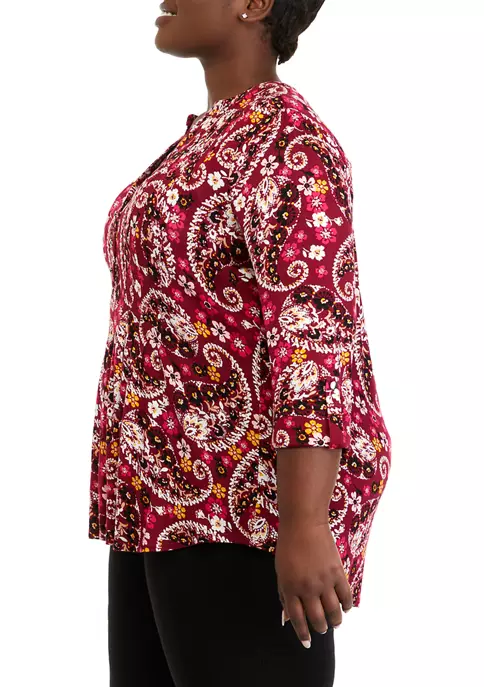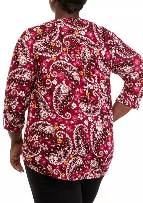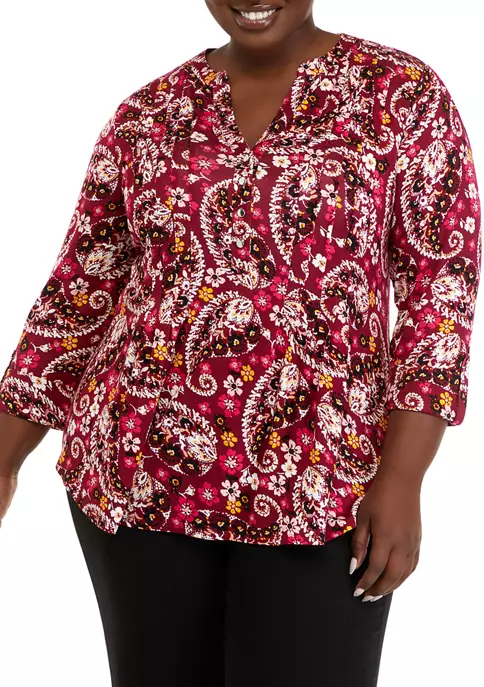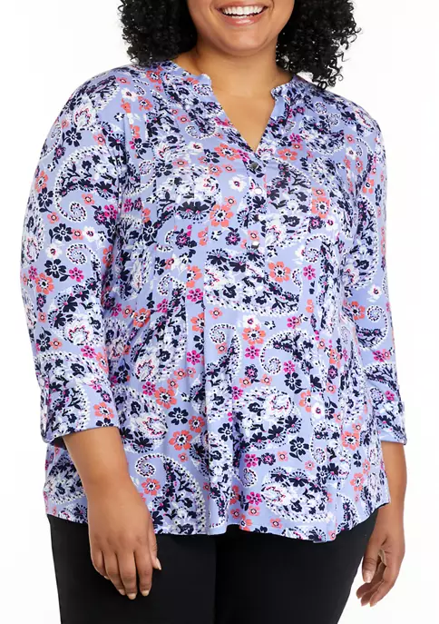 Top 10 🌟 Kim Rogers® Plus Size 3/4 Sleeve Henley Dot Paisle Top 😀