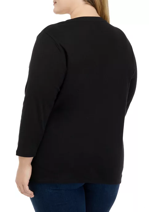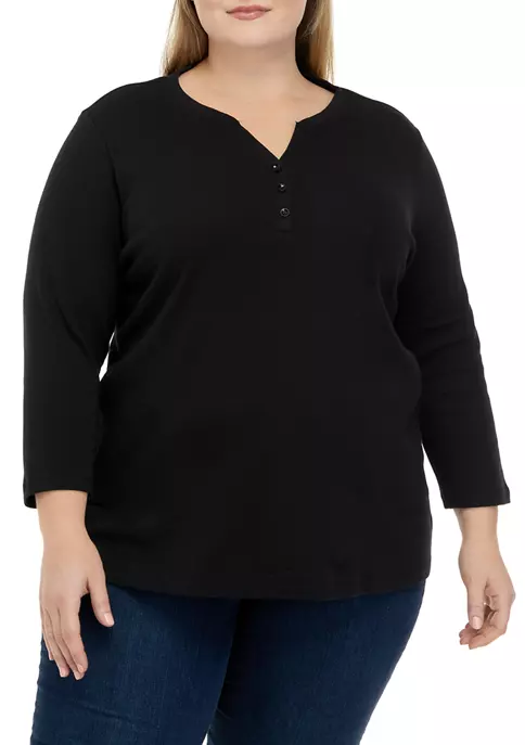 Deals ✔️ Kim Rogers® Plus Size 3/4 Sleeve Henley Cheetah Print Top 😉