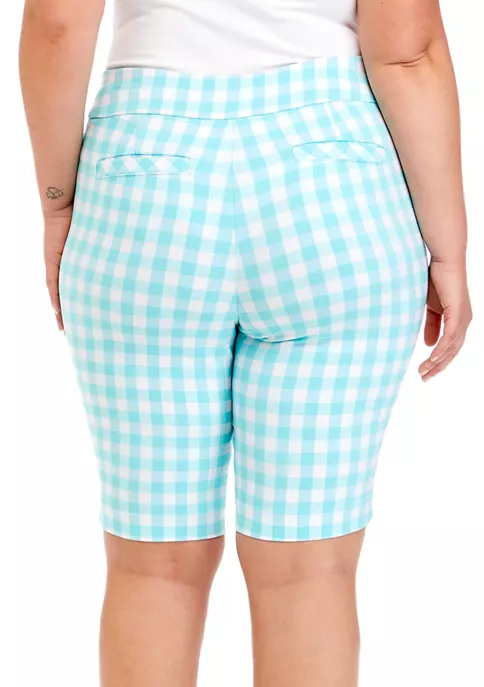 Slip easily into these pull-on Bermuda shorts from Kim Rogers® that are covered in a dimensional checkered print.
