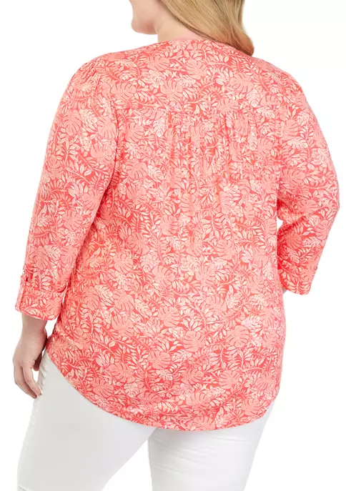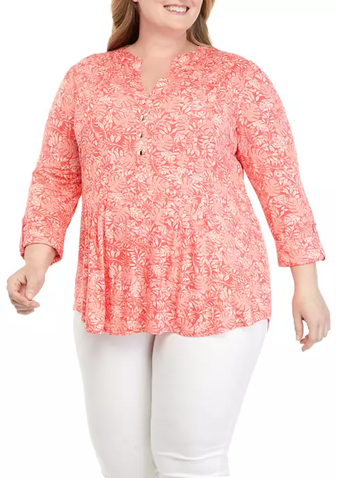 Deals ✔️ Kim Rogers® Plus Size 3/4 Sleeve Henley Cheetah Print Top 😉