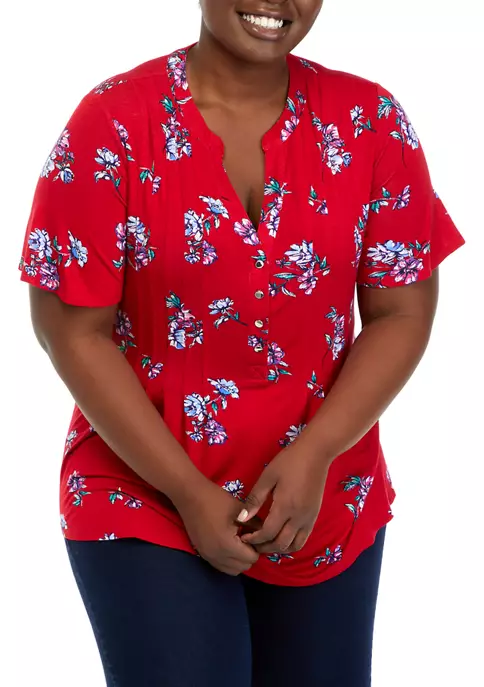 Deals ✔️ Kim Rogers® Plus Size 3/4 Sleeve Henley Cheetah Print Top 😉
