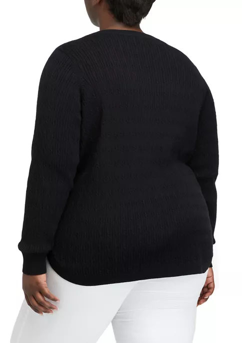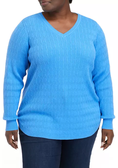 A feminine V-neckline defines this cozy cable knit sweater from Kim Rogers®.