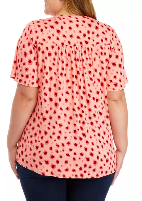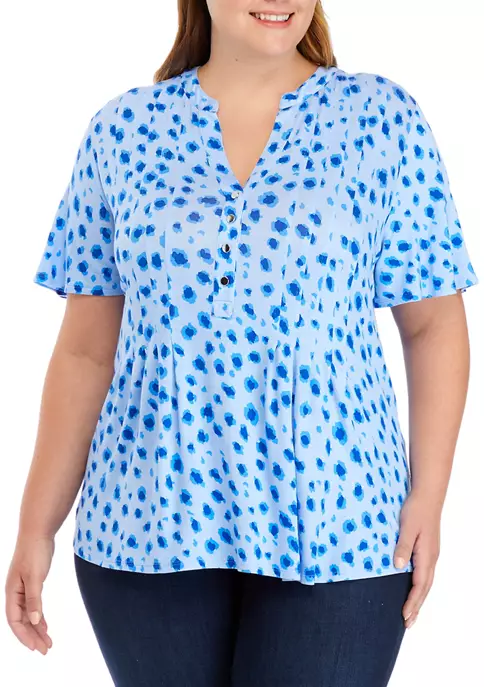 Deals ✔️ Kim Rogers® Plus Size 3/4 Sleeve Henley Cheetah Print Top 😉