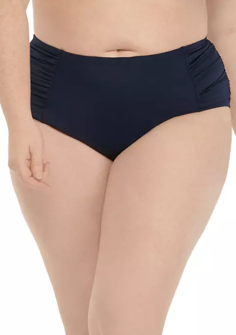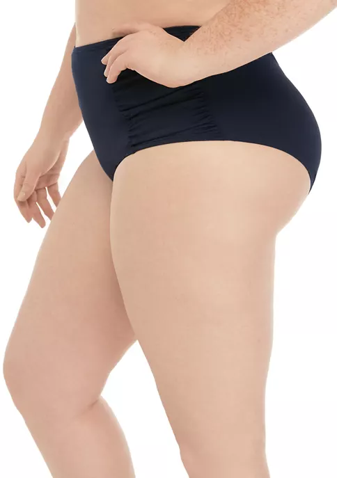 Shirred sides add style to these swim bottoms by Kim Rogers®, flattering your figure and offering slimming qualities.