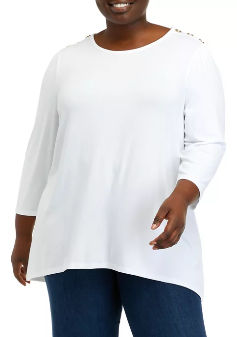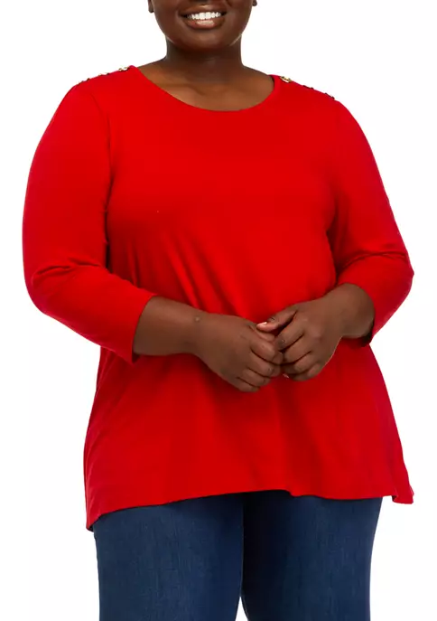 Top 10 🌟 Kim Rogers® Plus Size 3/4 Sleeve Henley Dot Paisle Top 😀