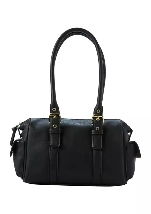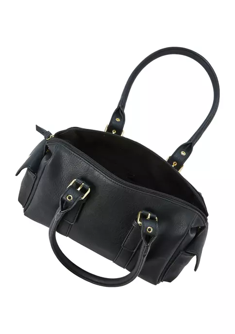 The simple structured silhouette of this calf-leather satchel from Kim Rogers® makes it an easy style to carry with you at any time.