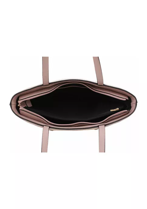 Updated with a zippered middle pouch, this chic tote from Kim Rogers® is made out of a straw for a natural touch.