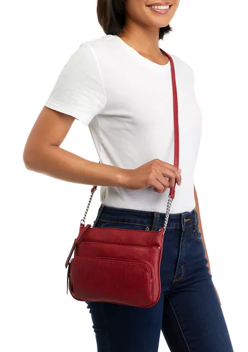 - Adjustable crossbody strap with 24.5″ drop
