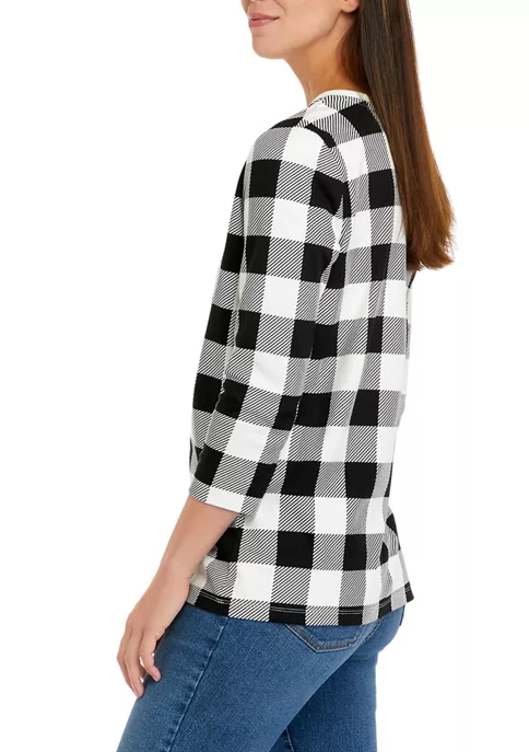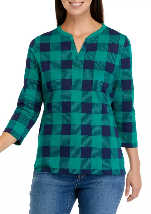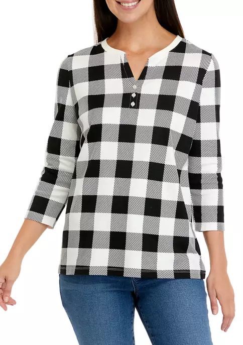 Top 10 🌟 Kim Rogers® Plus Size 3/4 Sleeve Henley Dot Paisle Top 😀