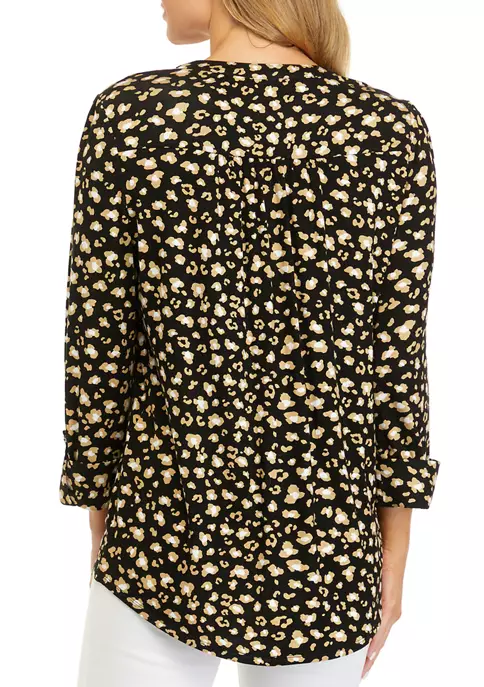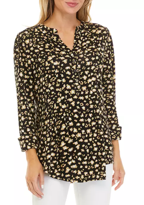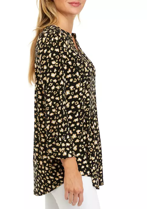 Finished in a curved hem for additional coverage, this 3/4 sleeve Henley top from Kim Rogers® boasts an eye-catching pattern that you’ll love to show off.