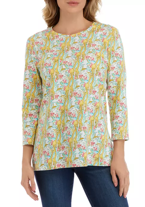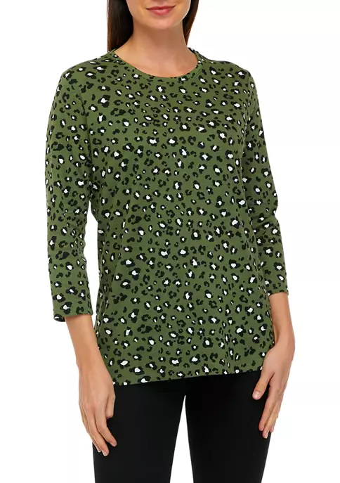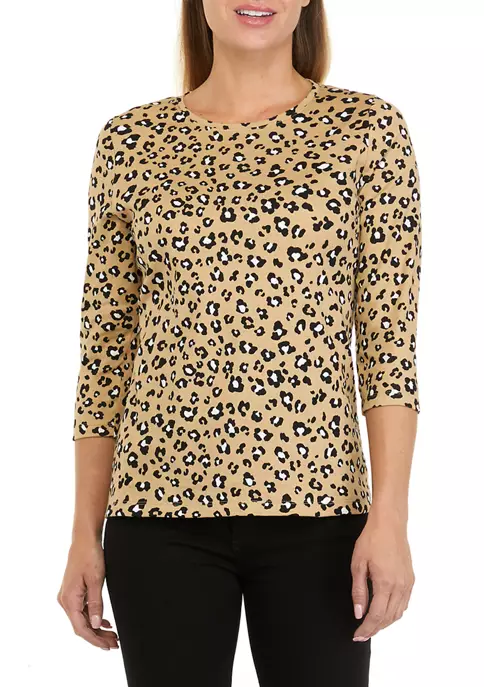 Deals ✔️ Kim Rogers® Plus Size 3/4 Sleeve Henley Cheetah Print Top 😉