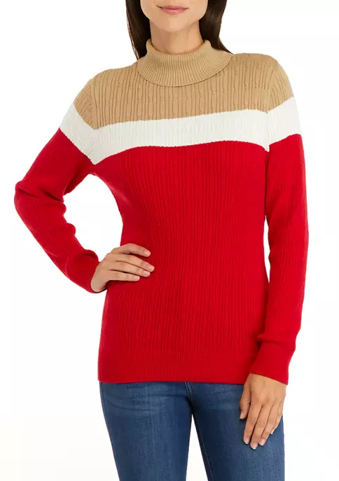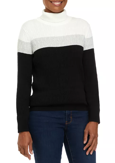 Crafted in soft cotton, this cozy cable knit sweater from Kim Rogers® is a cold-weather must-have.