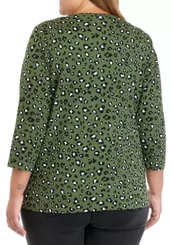 Outlet ❤️ Kim Rogers® Plus Size 3/4 Sleeve Henley Printed Top 🧨