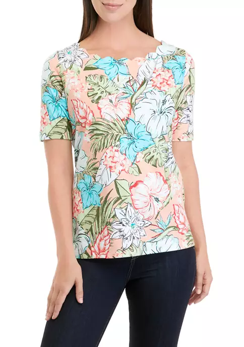 Deals ✔️ Kim Rogers® Plus Size 3/4 Sleeve Henley Cheetah Print Top 😉
