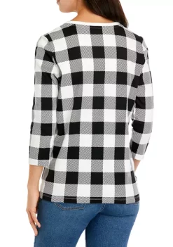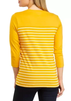 Wholesale 👏 Kim Rogers® Petite 3/4 Sleeve Henley Hacci Top 👍