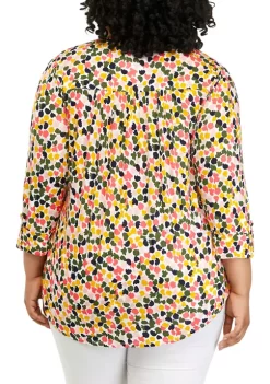 Wholesale 🔥 Kim Rogers® Plus Size 3/4 Sleeve Petal Dot Print 👚 Shirt 😍