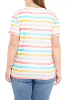 Top 10 🤩 Kim Rogers® Plus Size Short Sleeve Print Henley Top ✨