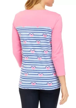 Cheap 💯 Kim Rogers® Petite Short Sleeve Mixed Print T-Shirt 🔔