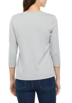 Best deal 🎁 Kim Rogers® Petite 3/4 Sleeve Henley Hacci Top 🎉